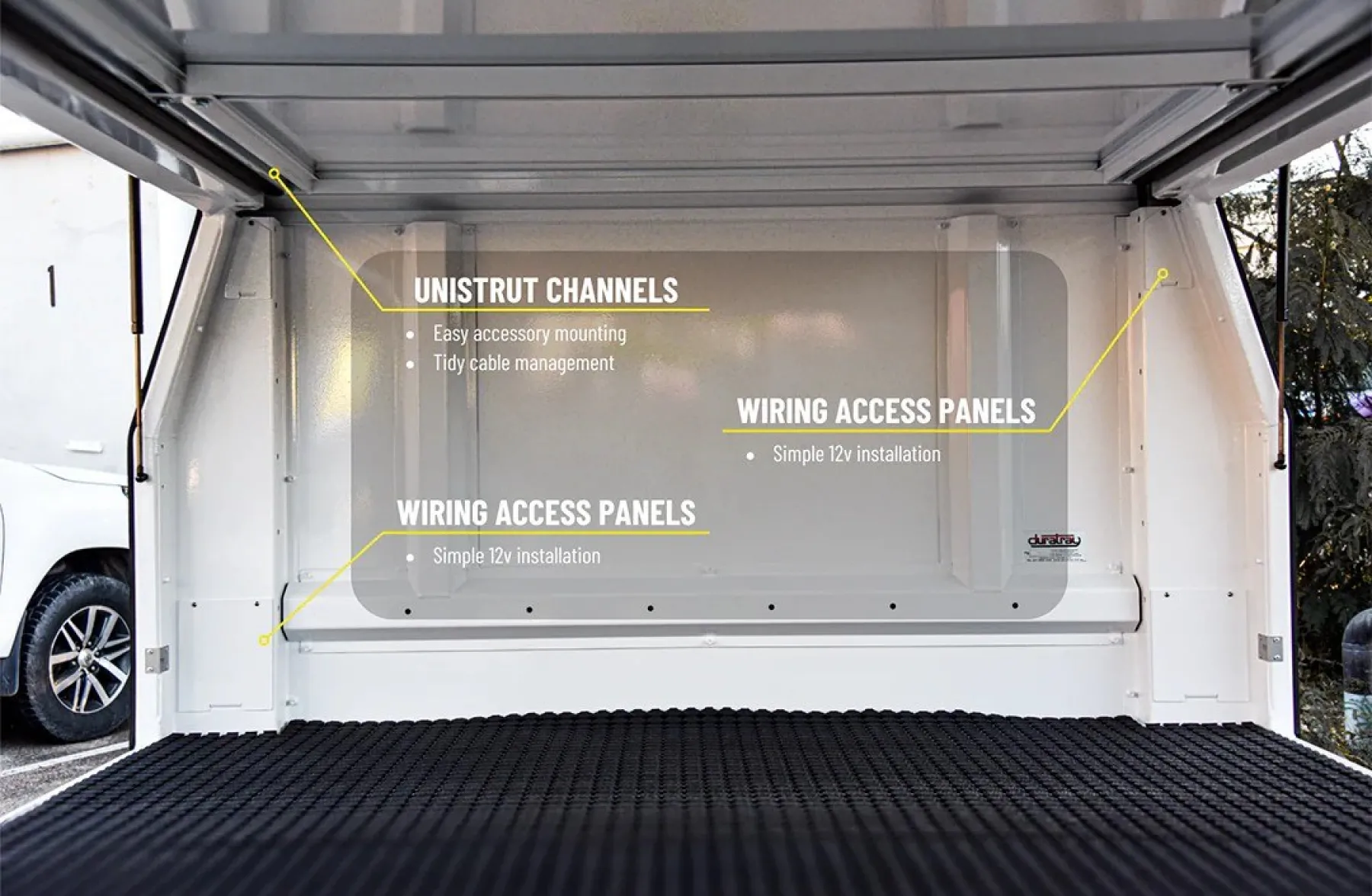 The Gen2 Chassis Mount Service Body is our premium alloy solution mounted directly to the chassis with a flat floor entry and maximum door clearance, reducing tare weight. Commercial and domestic fit-outs available.